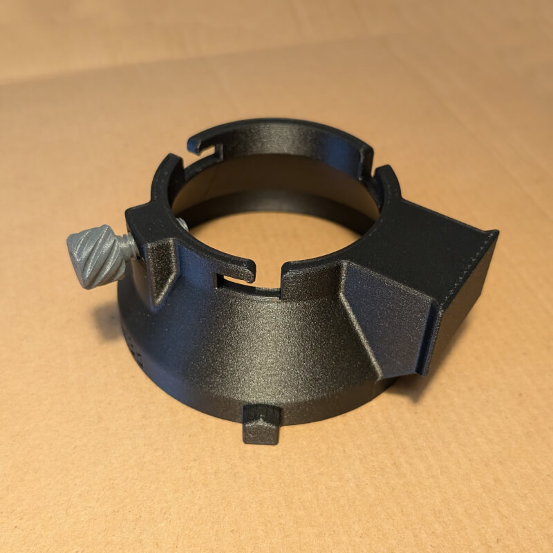 Adapter wykonany z ASA, które jest odporne na wysokie temperatury. Instalacja odbywa się poprzez przekręcenie adaptera i przykręcenie śruby ustalającej.