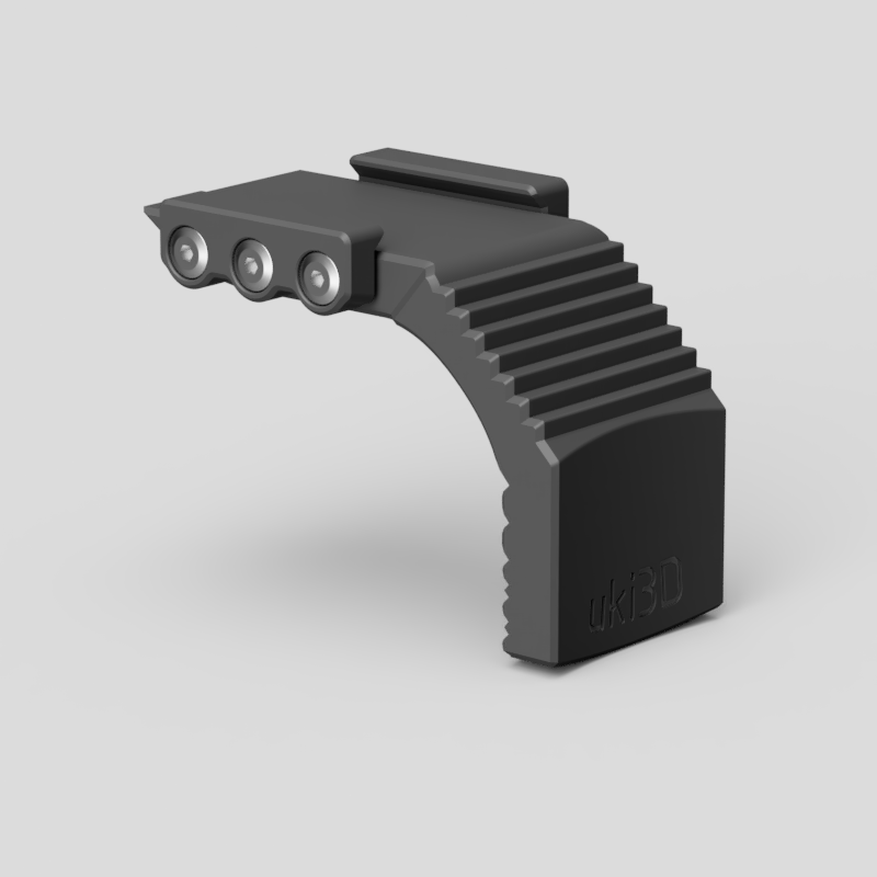 Bag Rider do kolby Tikka T3X Ace Target. długość – 120mm szerokość – dopasowana do szerokości kolby – 22.5mm kąt 0° (8°, 9° lub 10° wkrótce) Możliwość wykonania dowolnego kąta nachylenia. W zestawie 2 śruby z nakrętkami MLOK. Wykonano w technologii druku 3D z PETG-CF (Carbon Fiber).