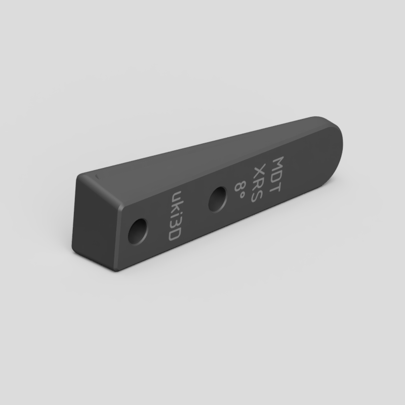 Bag Rider do kolby MD XRS. długość – 120mm szerokość – dopasowana do szerokości kolby – 1″ (~25mm) kąt 0°, 8°, 9° lub 10° Możliwość wykonania dowolnego kąta nachylenia. W zestawie 2 śruby. Wykonano w technologii druku 3D z PETG-CF (Carbon Fiber).