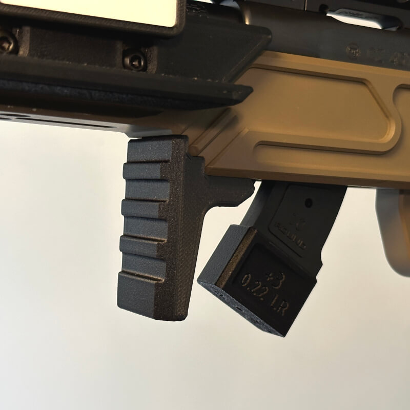 Idealna opcja dla tych, którzy strzelają z worka. Dzięki stopowi nie ma możliwości że położycie karabin na magazynku a co za tym idzie zmniejsza się ryzyko awarii.
