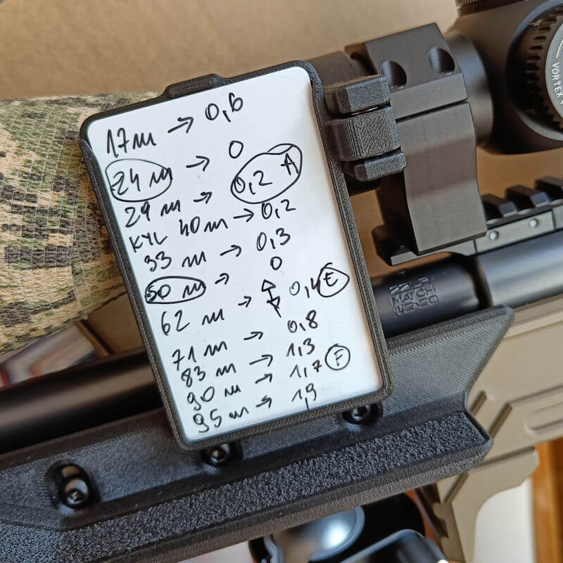 D.O.P.E. Card Holder do poprawek lub innych notatek na lunety o średnicy 25.4mm, 30mm, 34mm, 35mm, 36mm i innych dowolnych oraz do otworów montażowych SPUHR.