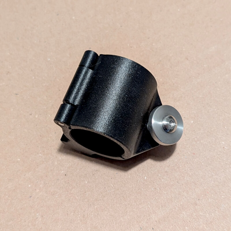 Obejma posiada funkcję szybkiego demontażu – odkręć i odchyl śrubę radełkowaną potem odchyl górną połówkę obejmy! Gotowe!