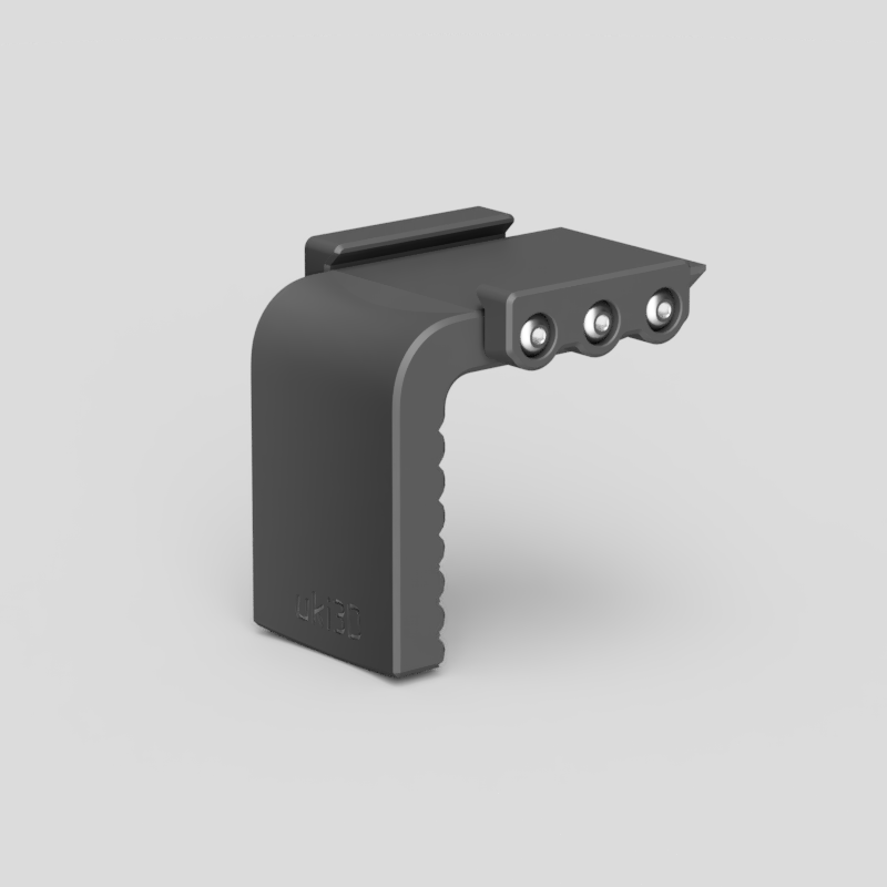 Adapter kątowy mocujący timer MDT CRUSH IT. Mocowanie adaptera: MLOK – 2 śruby MLOK w zestawie SPUHR/LAMBDA PRECISION – 2 śruby M4 w zestawie Wykonano w technologii druku 3D z PETG-CF (Carbon Fiber).