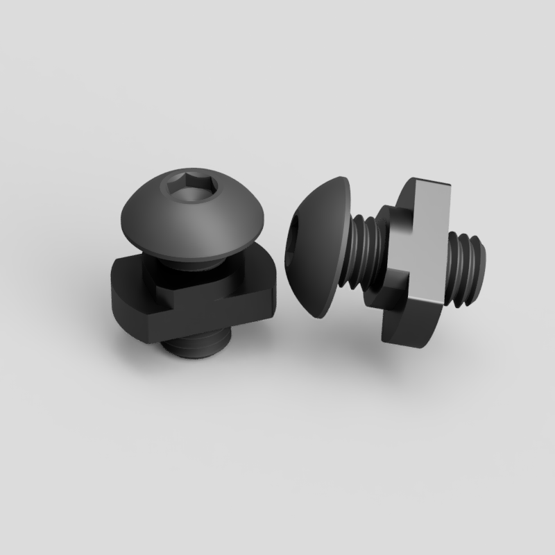 Zestaw śrub i nakrętek młoteczkowych w systemie M-LOK. Gwint do wyboru: metryczny M5 lub imperialny 10#-24. Długość śruby M5 – 10mm. Długość śruby z gwintem imperialnym – ~9mm. Paczka zawiera 5 sztuk śrub i nakrętek.