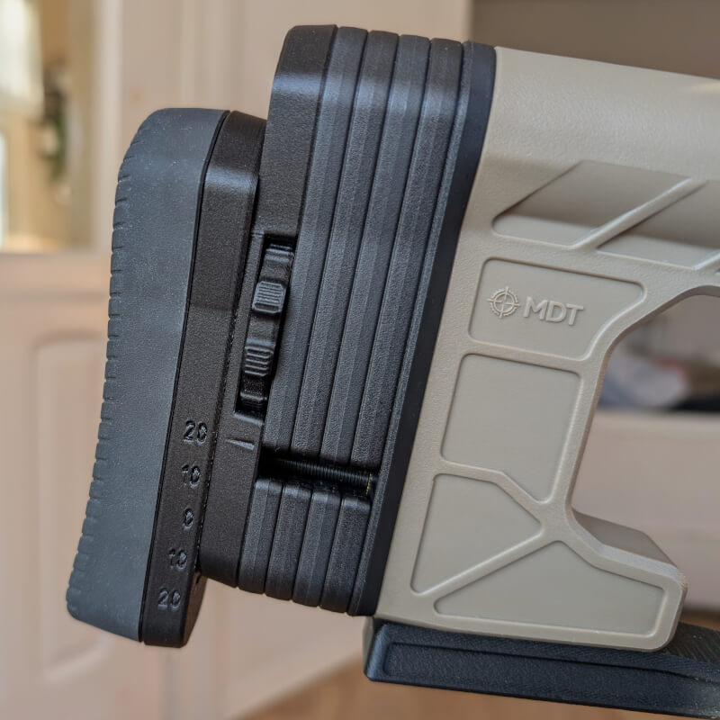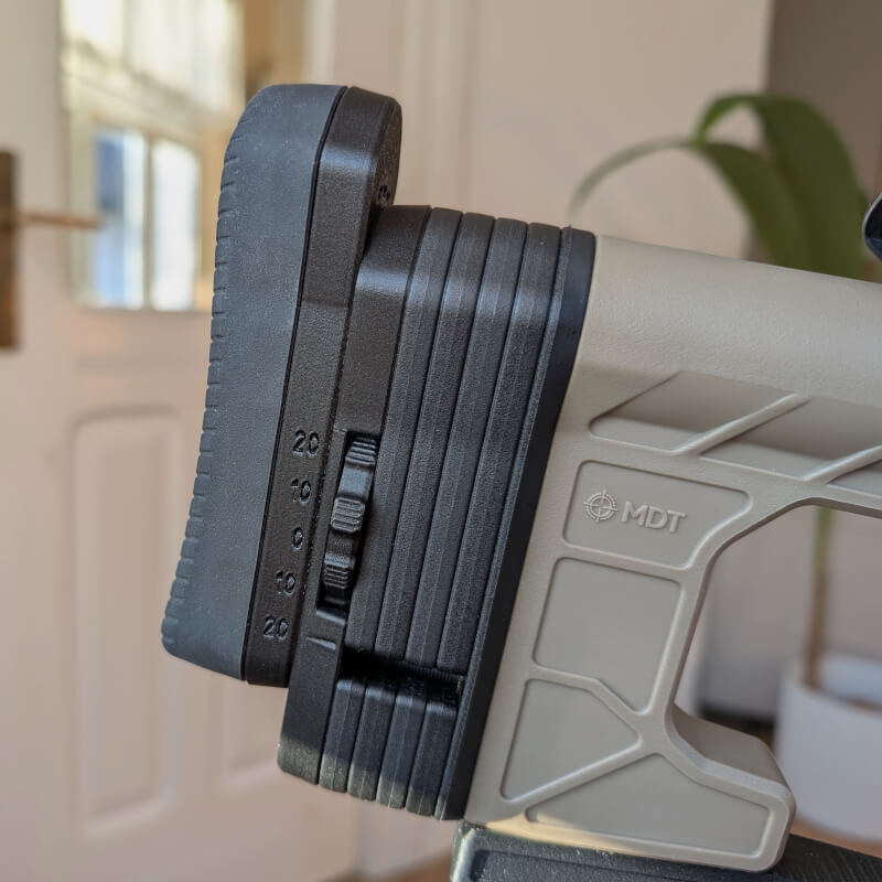 Szeroka regulacja (45 możliwych ustawień!) pozwala na idealne dopasowanie pod strzelca.