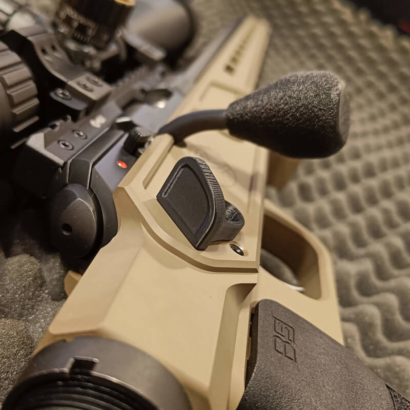 Thumb Rest, który pozwala ułożyć kciuk przy strzelaniu precyzyjnym.