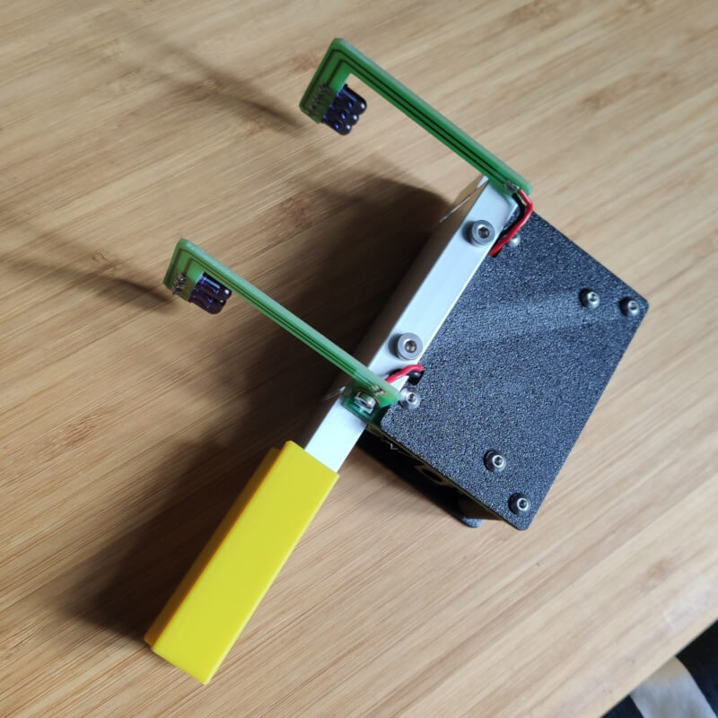 Pierwsze podejście do obudowy Chrono R1. Dwie płytki, od czoła i od tyłu osłaniające elektronikę, dodatkowe tuleje dystansowe i śruby. Nakładka na mocowanie na lufę wykonana z miękkiego TPU.